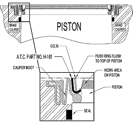 4 <> Buy ATC’s H-101 Retaining Ring for $.50 and salvage the piston allowing a savings of $1.50 to $2.50 per Caliper. We both go home happy.